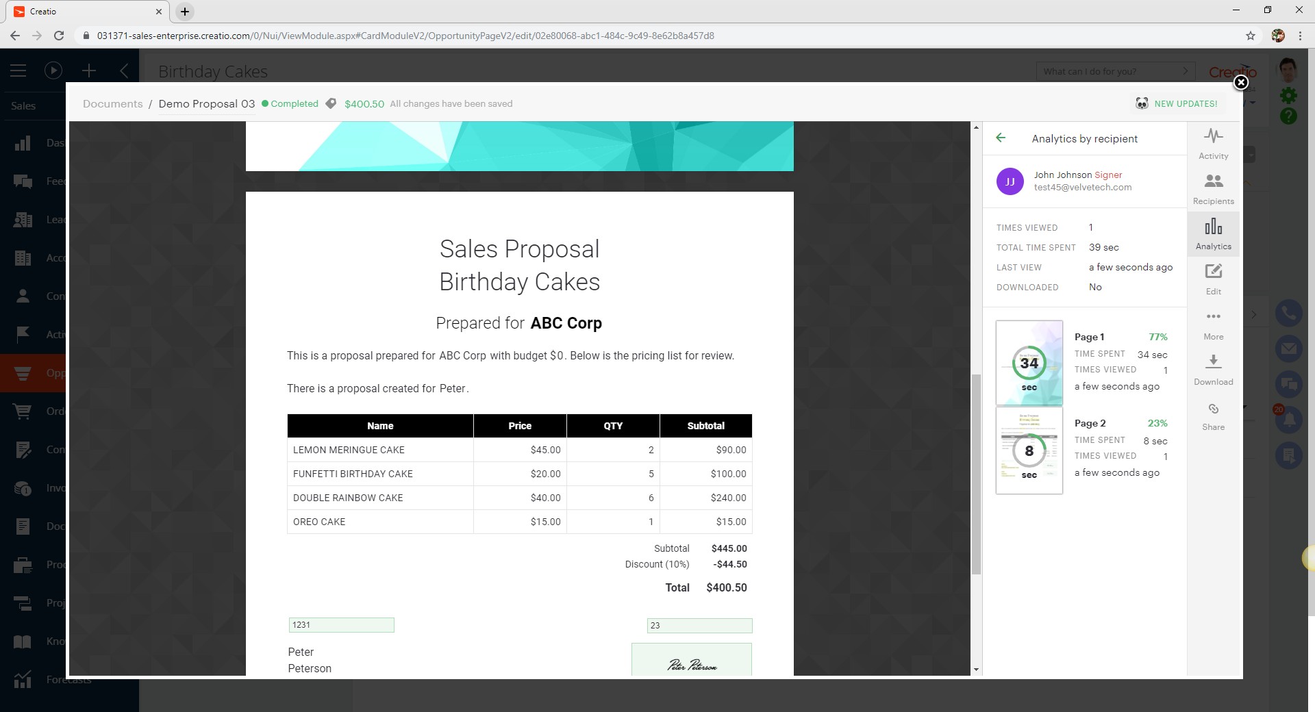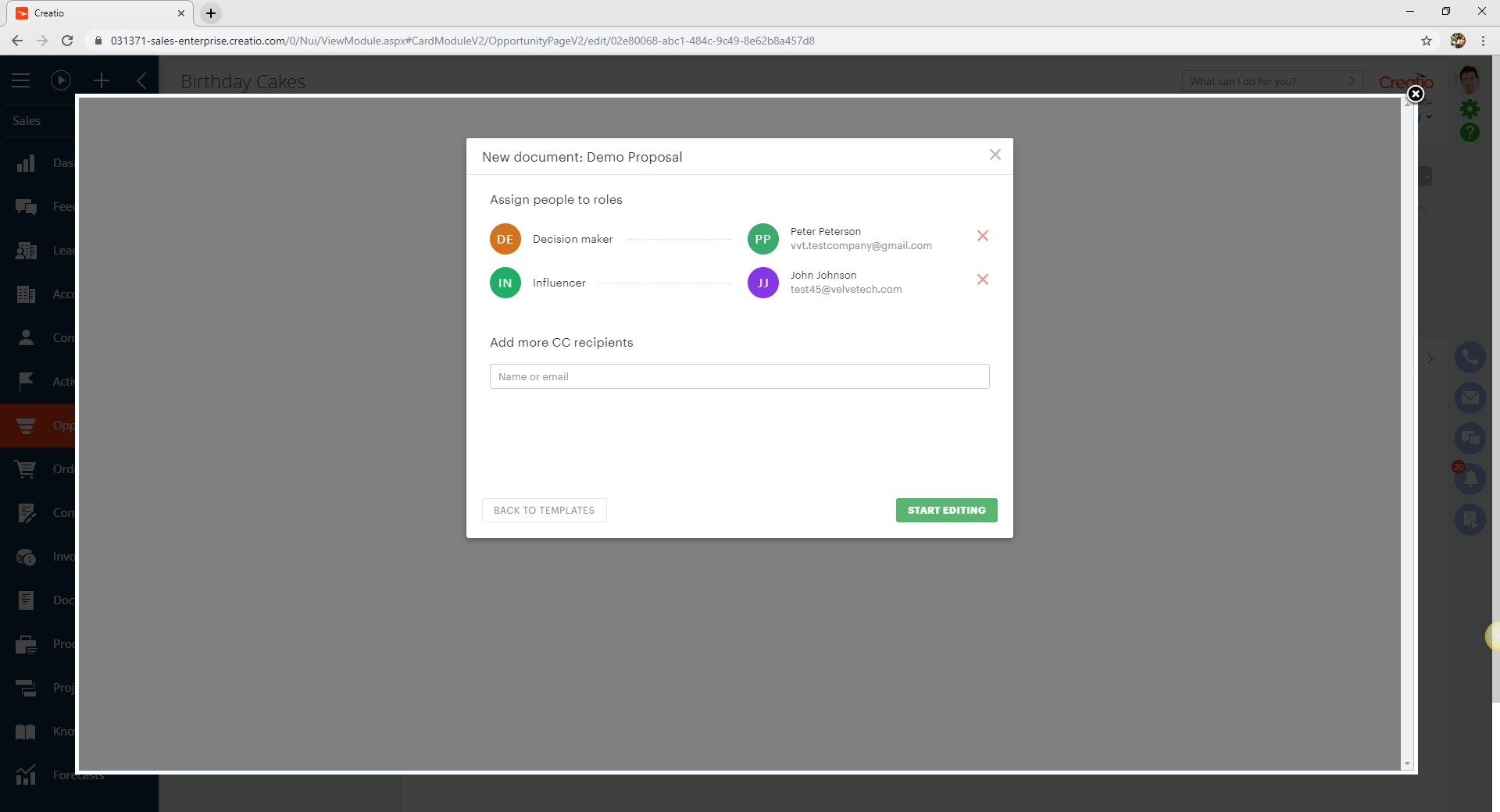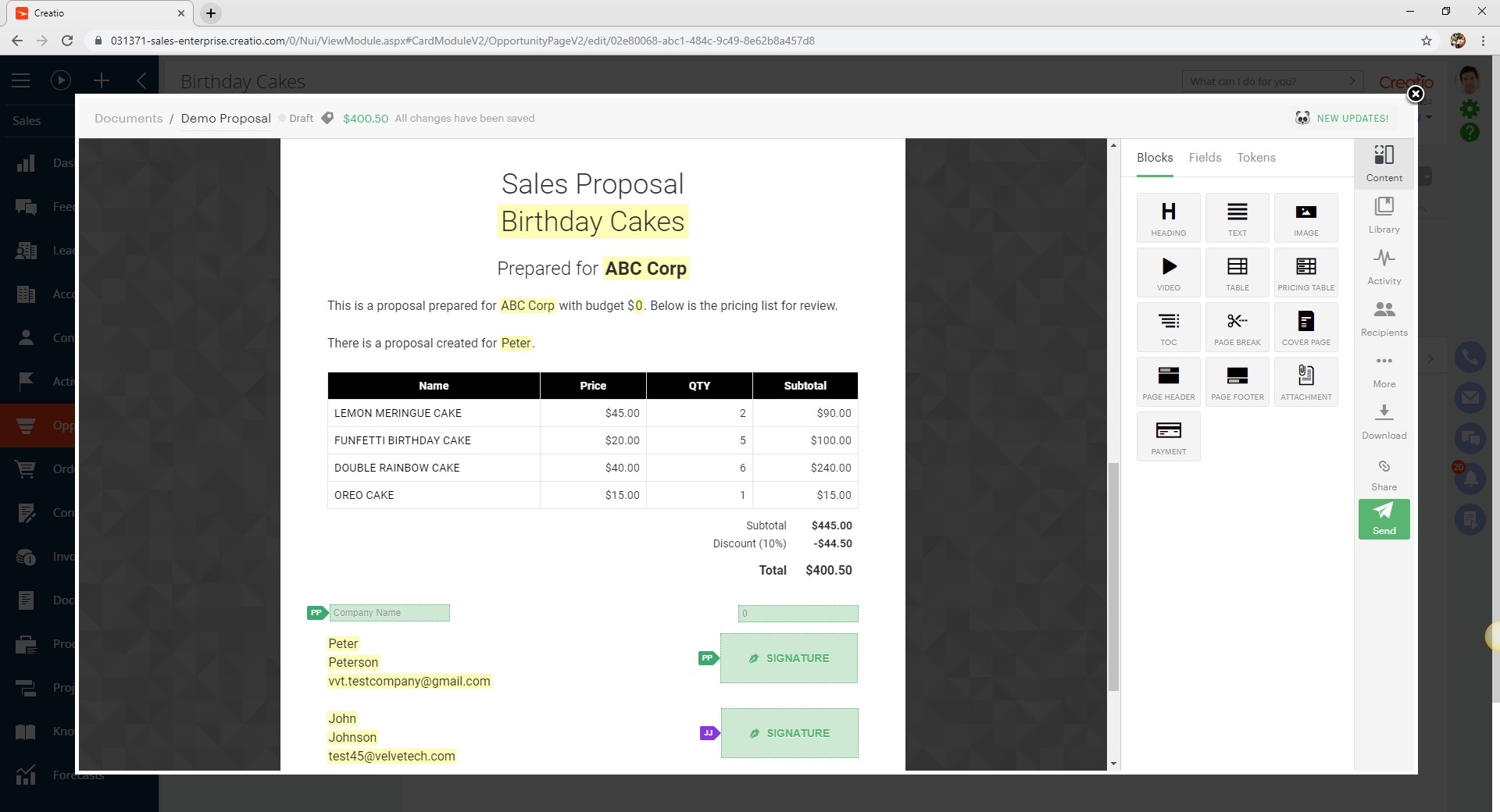 Create any customer-specific documents right within the Creatio platform