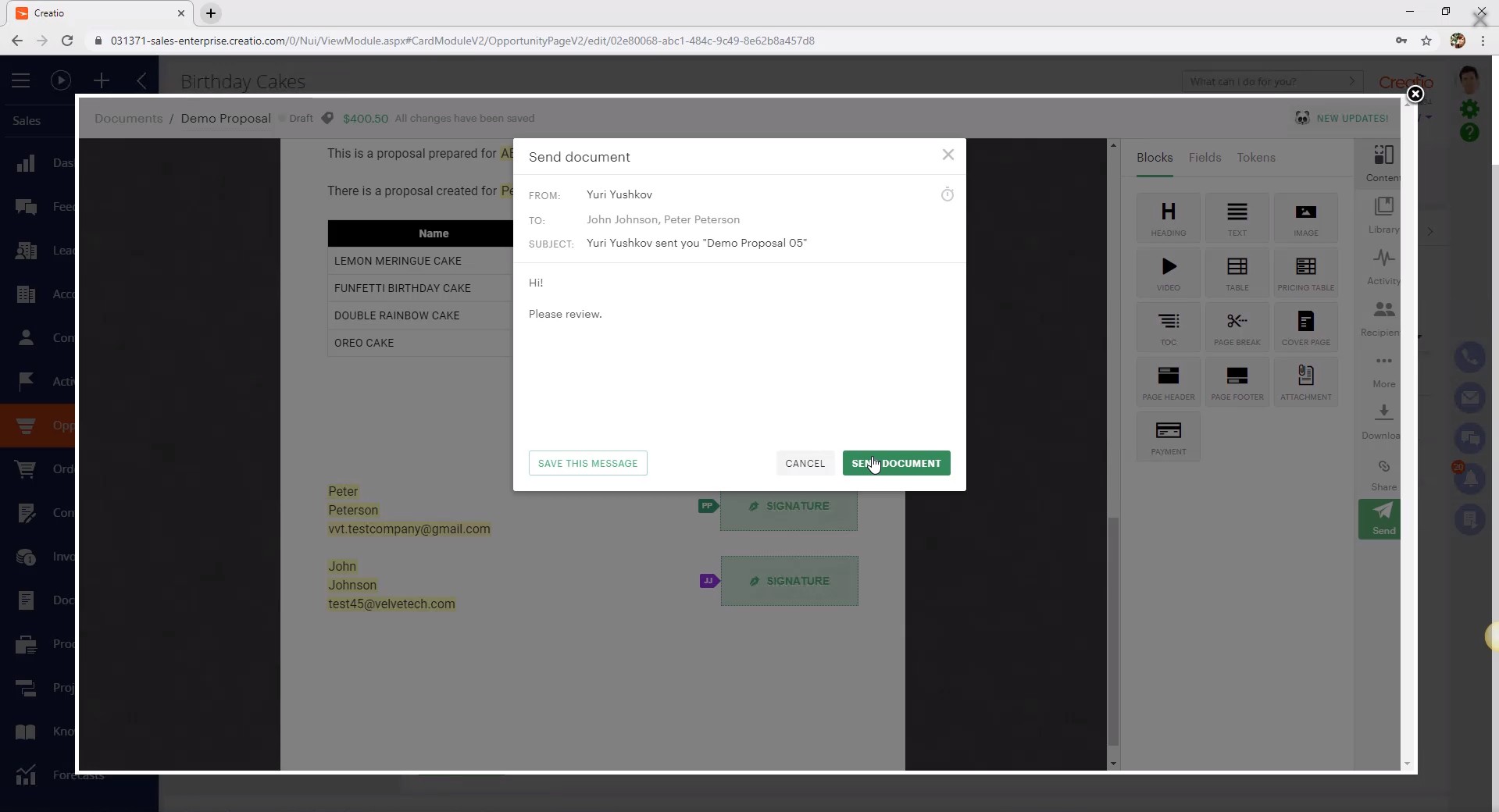 Manage Customer Documents inside CRM Creatio